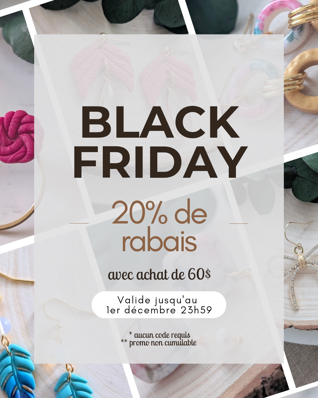 Basée dans la magnifique région de Québec, Bastine est le reflet de mon univers créatif : des pièces faites à la main avec amour, en argile polymère et en acier inoxydable hypoallergène, pour que chaque personne qui les porte se sente belle, confiante et unique.