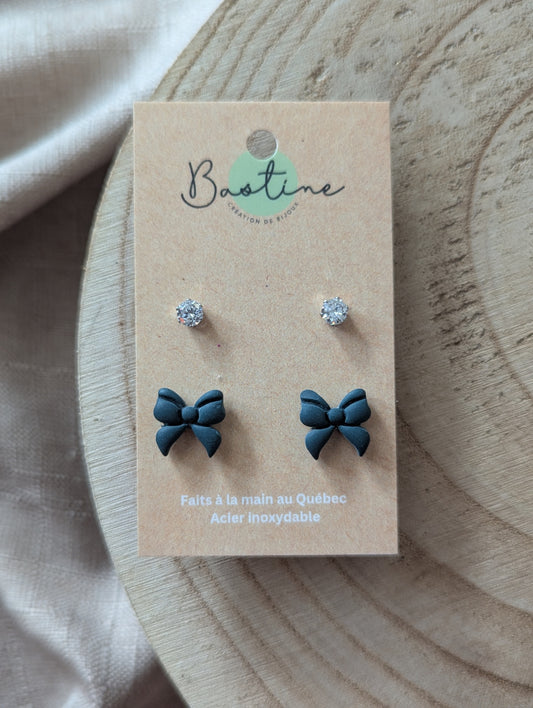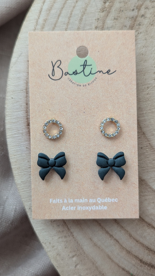 Duo festif - Boucles d'oreilles studs en argile polymère acier inoxydable hypoallergène