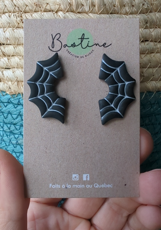 Toiles d'araignées - Boucles d'oreilles studs en argile polymère acier inoxydable hypoallergène