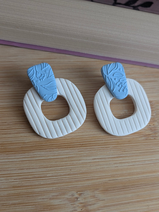 Sandy bleue texturée - Boucles d'oreilles studs en argile polymère et acier inoxydable hypoallergène