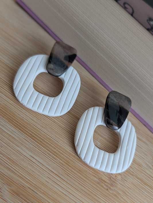 Créoles tortoises - Boucles d'oreilles pendantes en argile polymère et acier inoxydable hypoallergène
