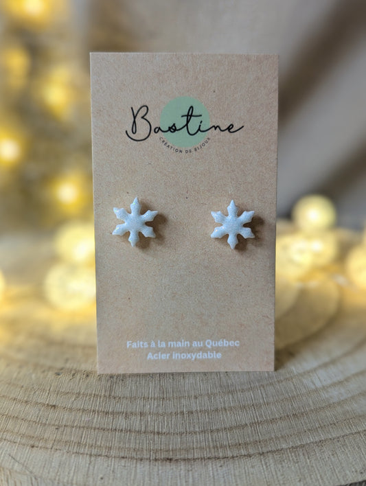 Flocons - Boucles d'oreilles studs en argile polymère et acier inoxydable hypoallergène