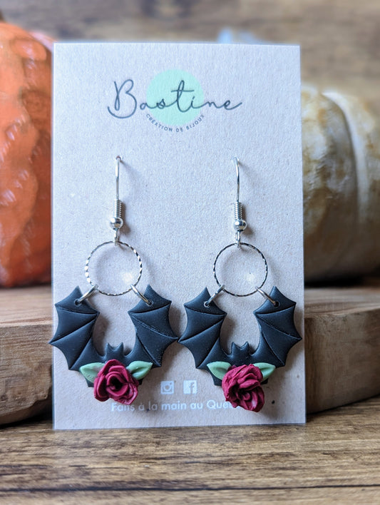 Halloween - Pendantes chauve-souris avec anneaux dorés