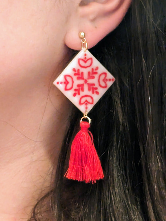Pénélope noires - Boucles d'oreilles pendantes argile polymère et acier inoxydable hypoallergène