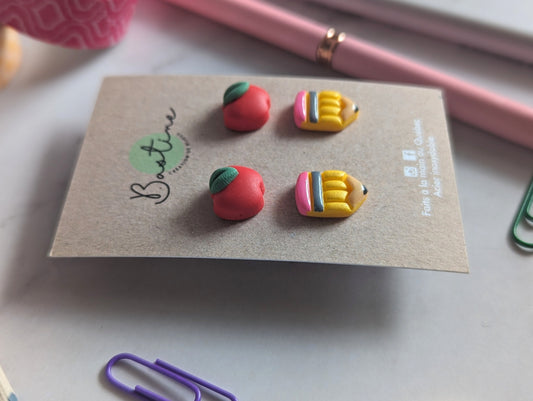 School Duo - Hypoallergenic stainless steel polymer clay stud earrings