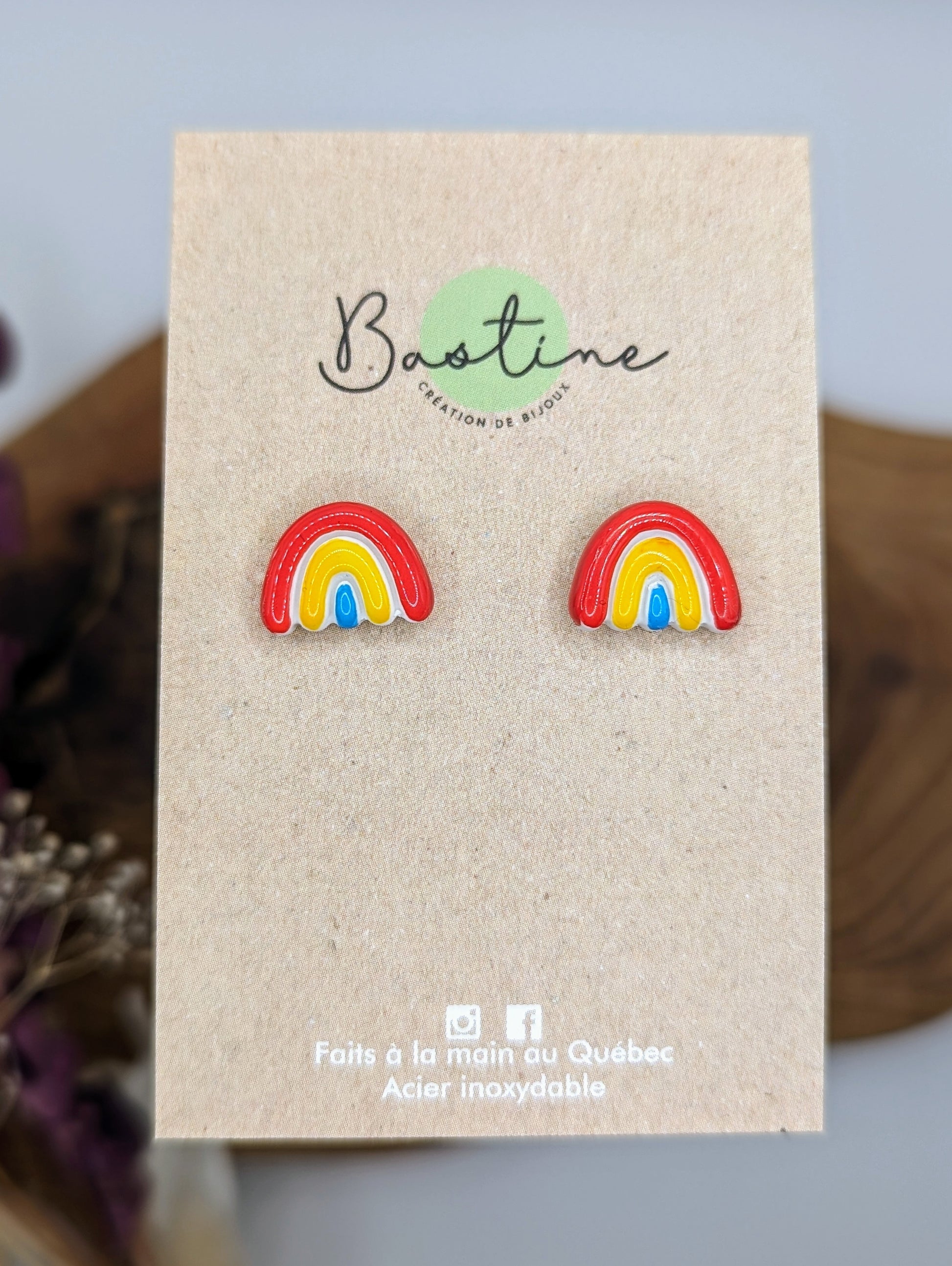 Add a touch of fun to your style with these adorable rainbow stud earrings! Handmade in Quebec, they're lightweight, colorful, and perfect for brightening up your day. With their hypoallergenic 316L surgical stainless steel posts, they're suitable for even the most sensitive skin.
