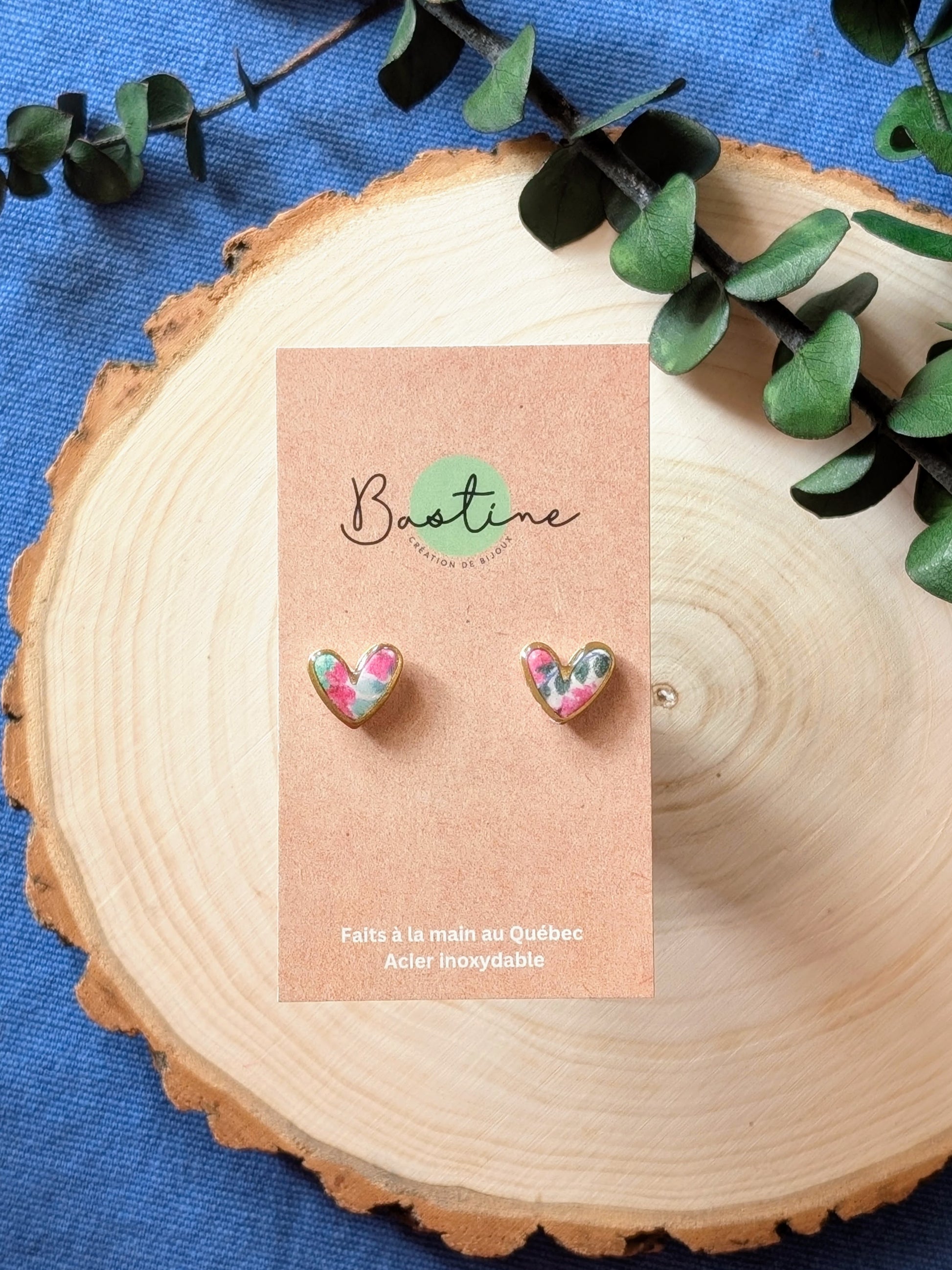 Alice - Boucles d'oreilles studs en argile polymère et acier inoxydable hypoallergène