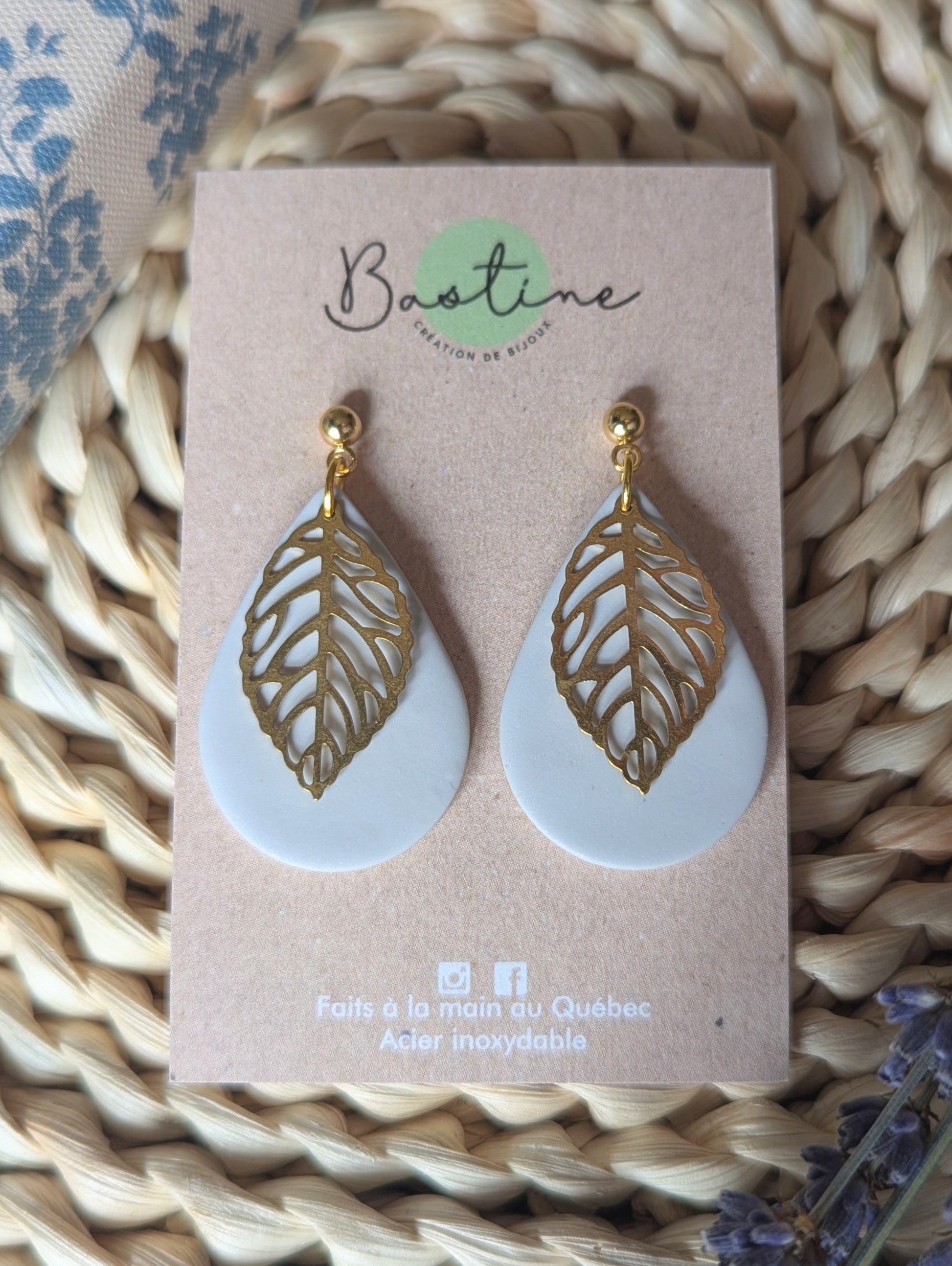 Leïla sauge - Boucles d'oreilles pendantes argile polymère et acier inoxydable hypoallergène