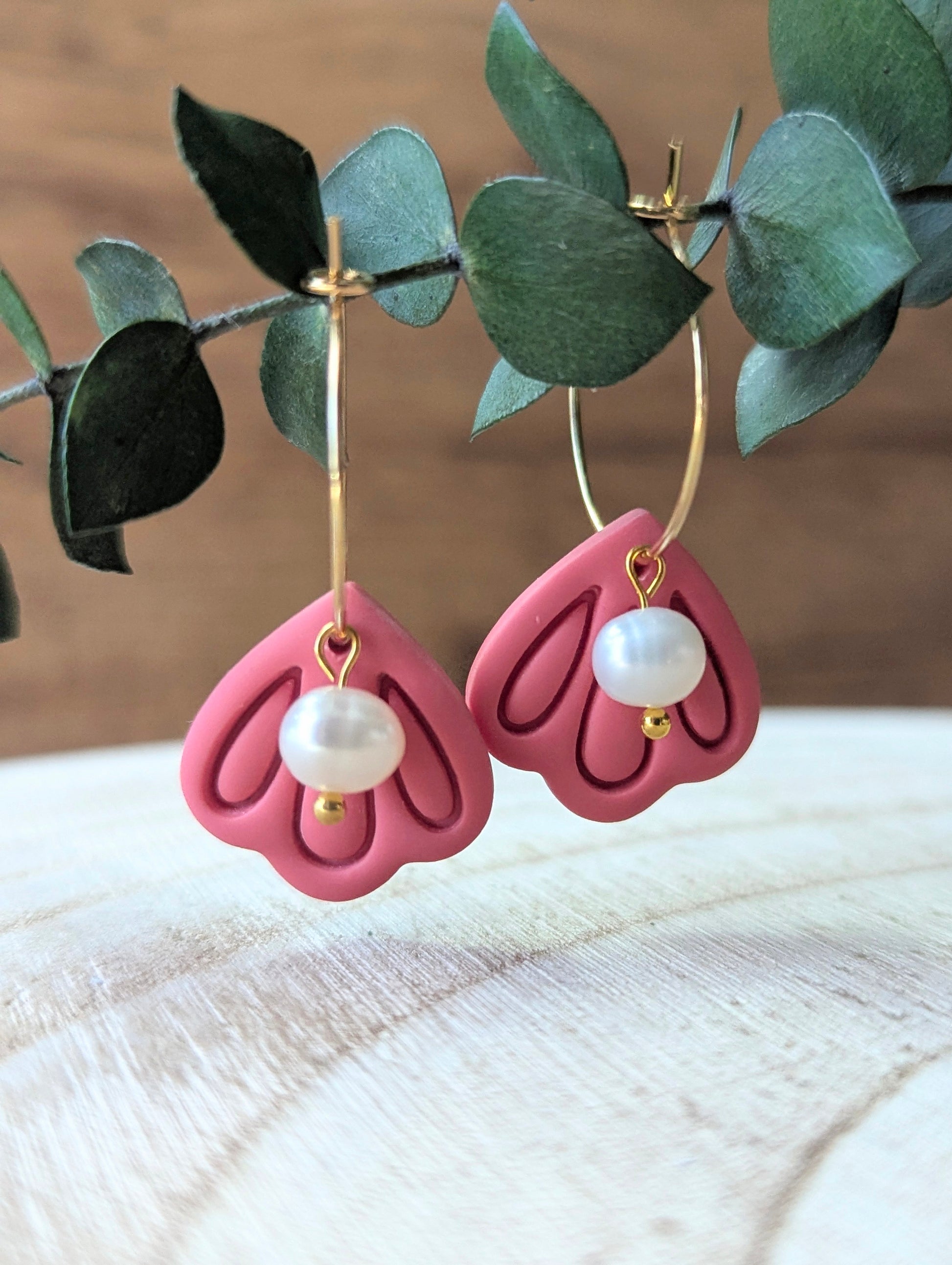 Pénélope Fuschia - Boucles d'oreilles pendantes argile polymère et acier inoxydable hypoallergène