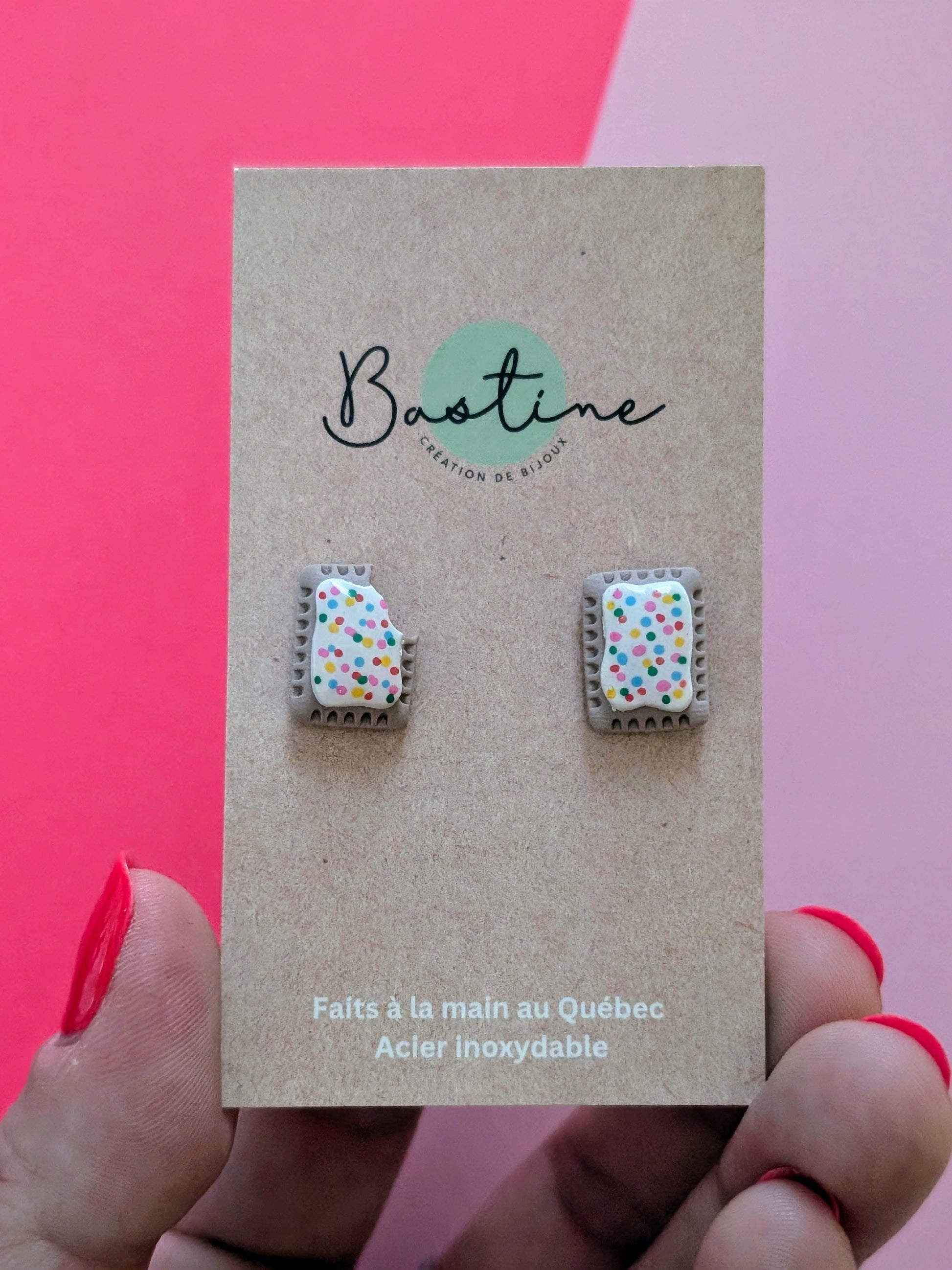 P!ka - Boucles d'oreilles studs en argile polymère et acier inoxydable hypoallergène