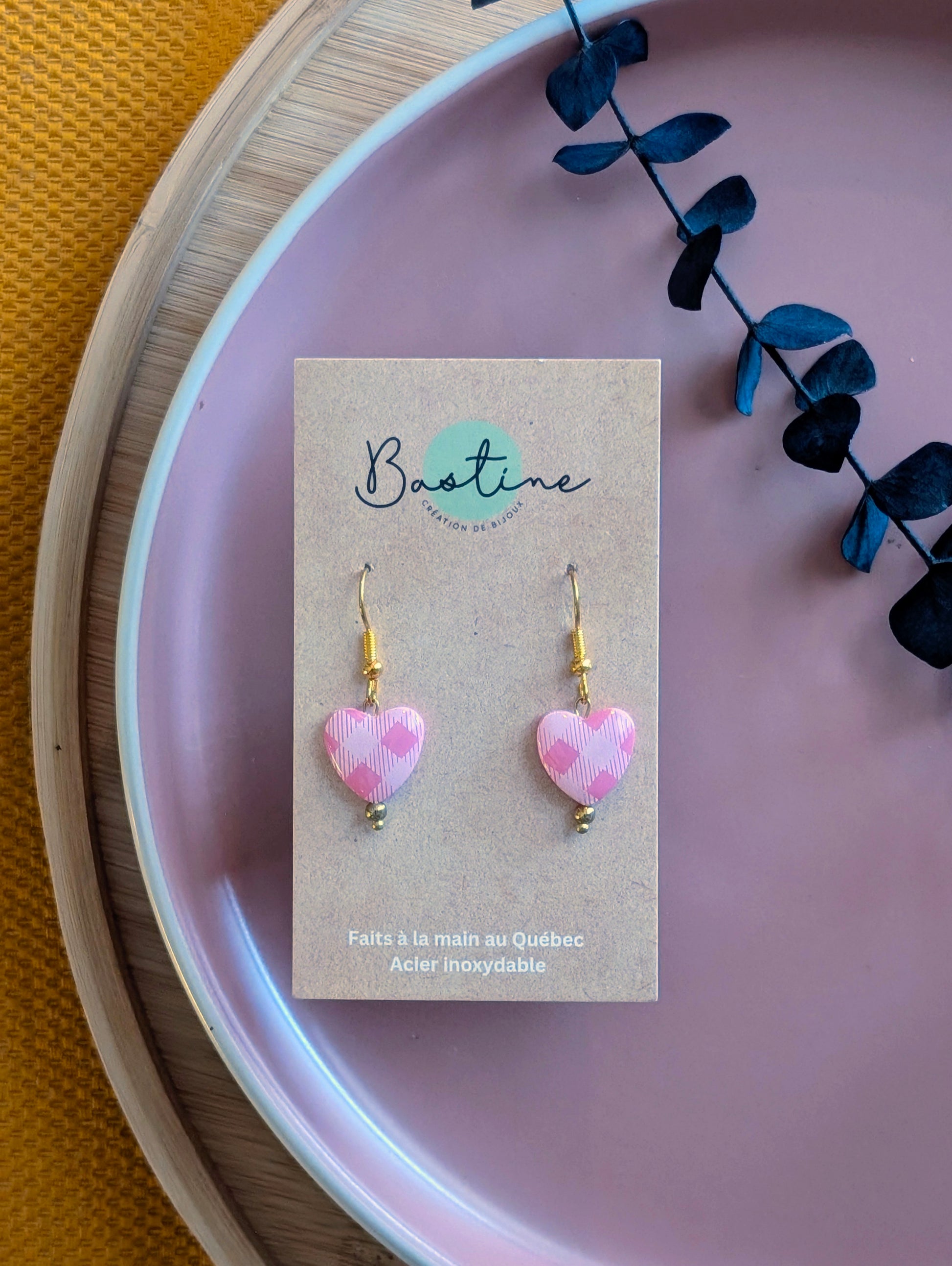 Boucles d'oreilles coeurs carreautés