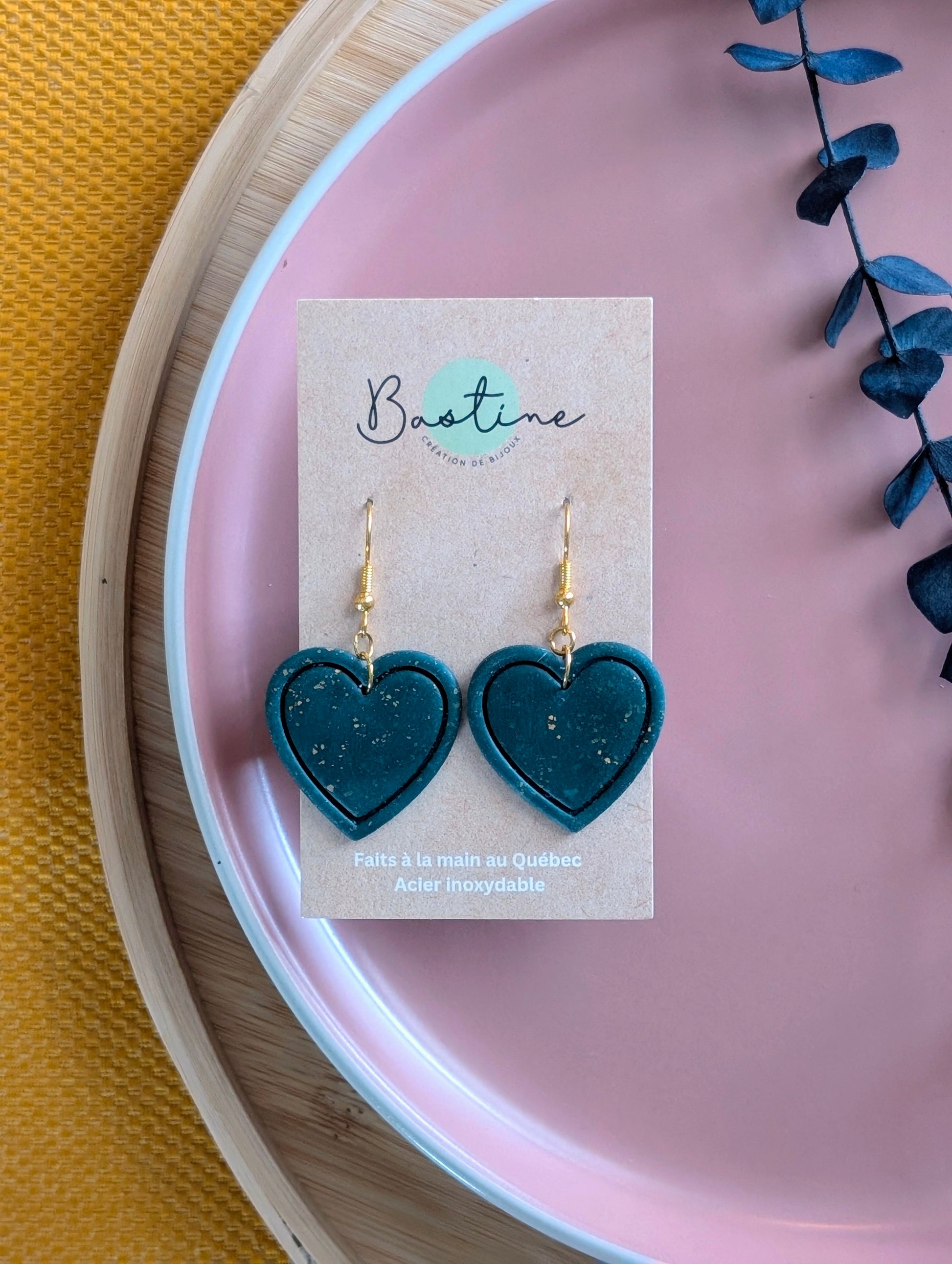 Leïla bourgogne - Boucles d'oreilles pendantes argile polymère et acier inoxydable hypoallergène