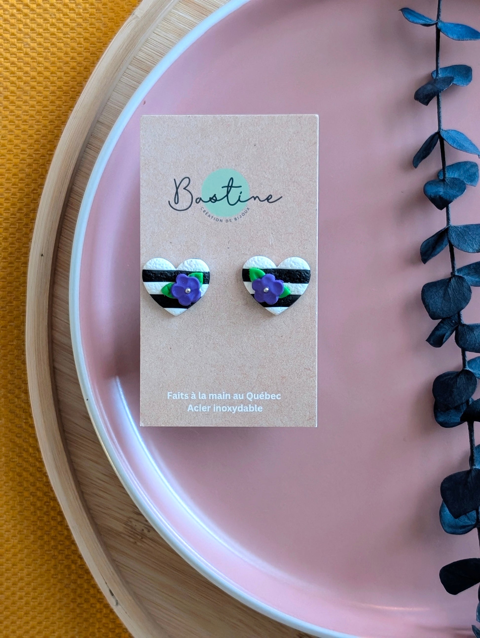Boucles d'oreilles coeurs rayés