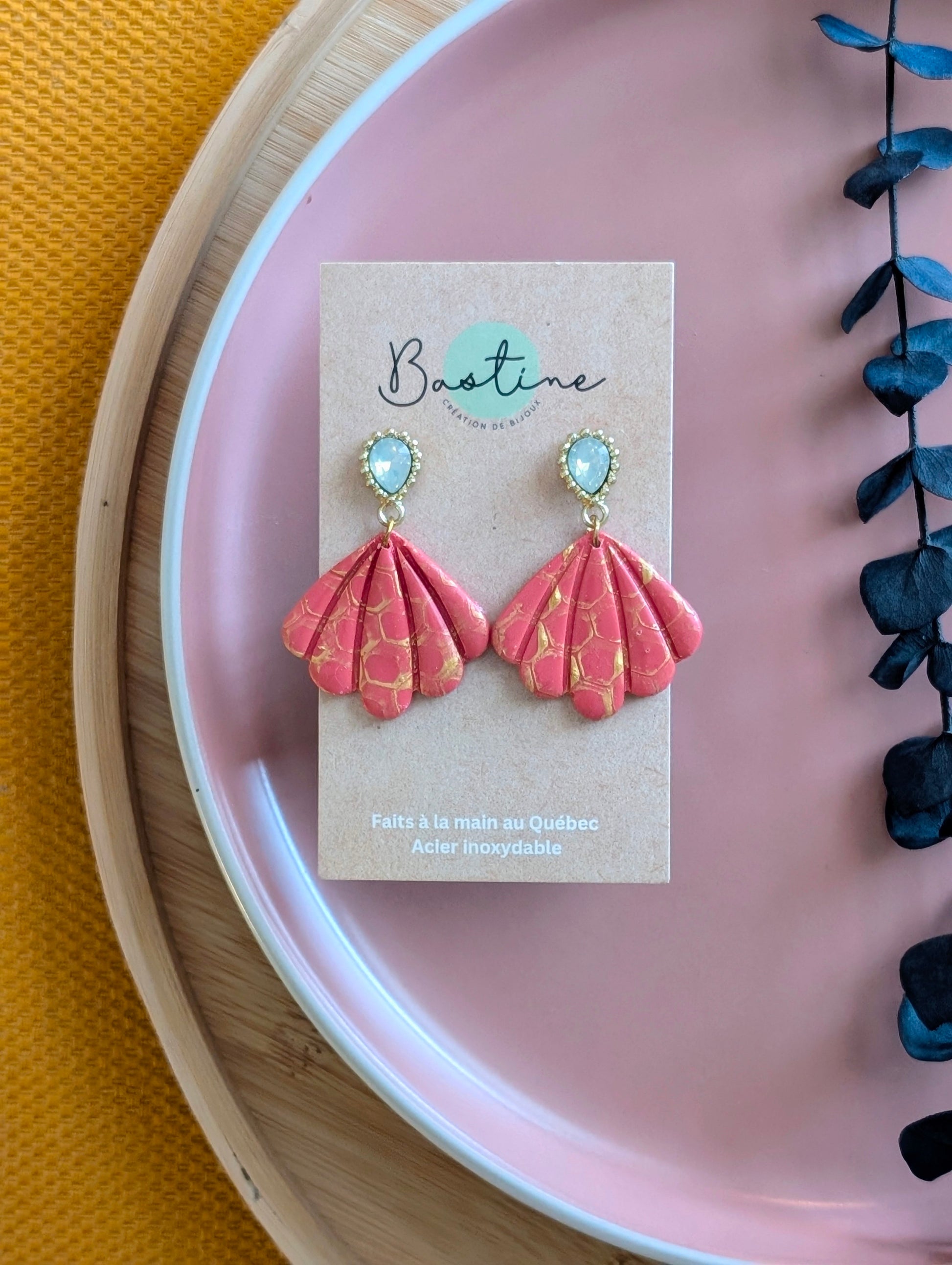 Pénélope corail néon - Boucles d'oreilles pendantes argile polymère et acier inoxydable hypoallergène