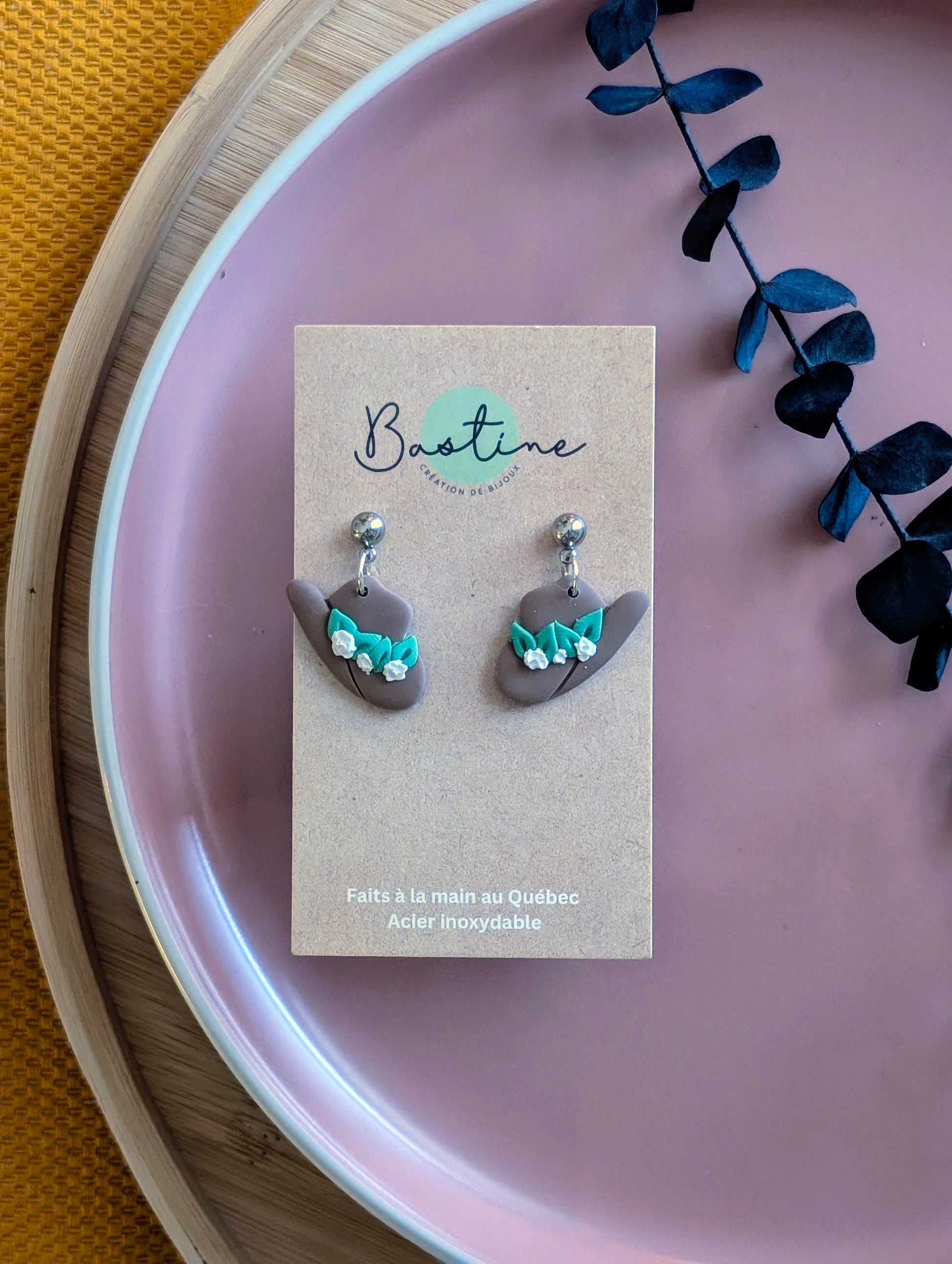 Karina sauge - Boucles d'oreilles pendantes en argile polymère et acier inoxydable hypoallergène