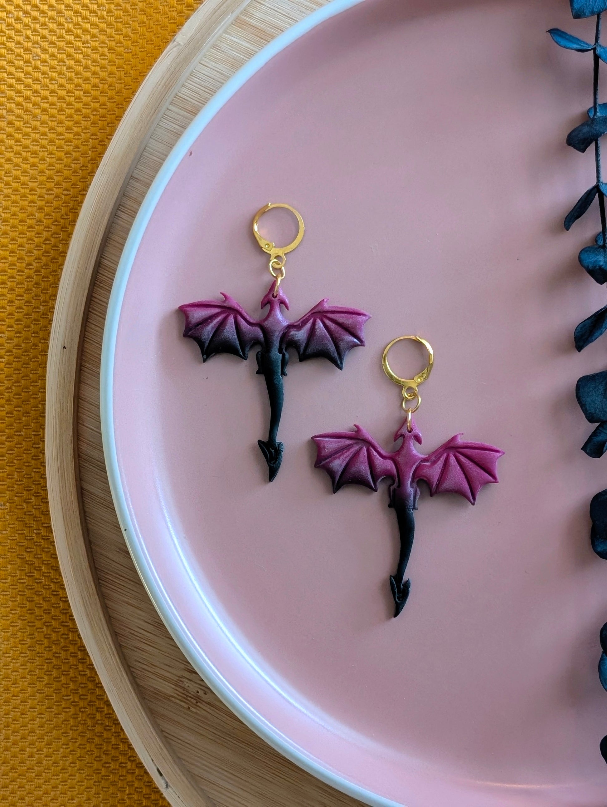 Leïla fuchsia - Boucles d'oreilles pendantes argile polymère et acier inoxydable hypoallergène