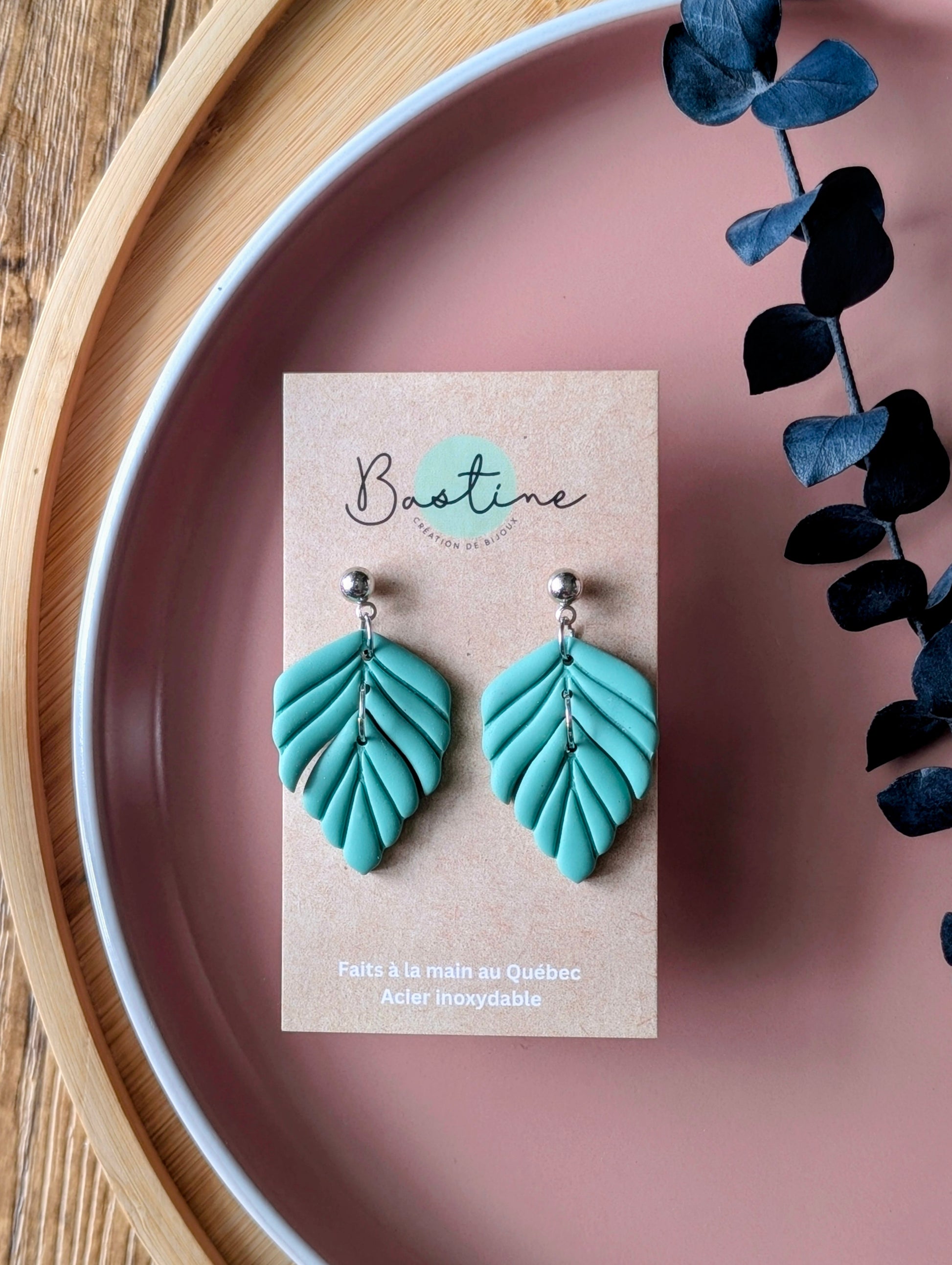 Karina sauge - Boucles d'oreilles pendantes en argile polymère et acier inoxydable hypoallergène