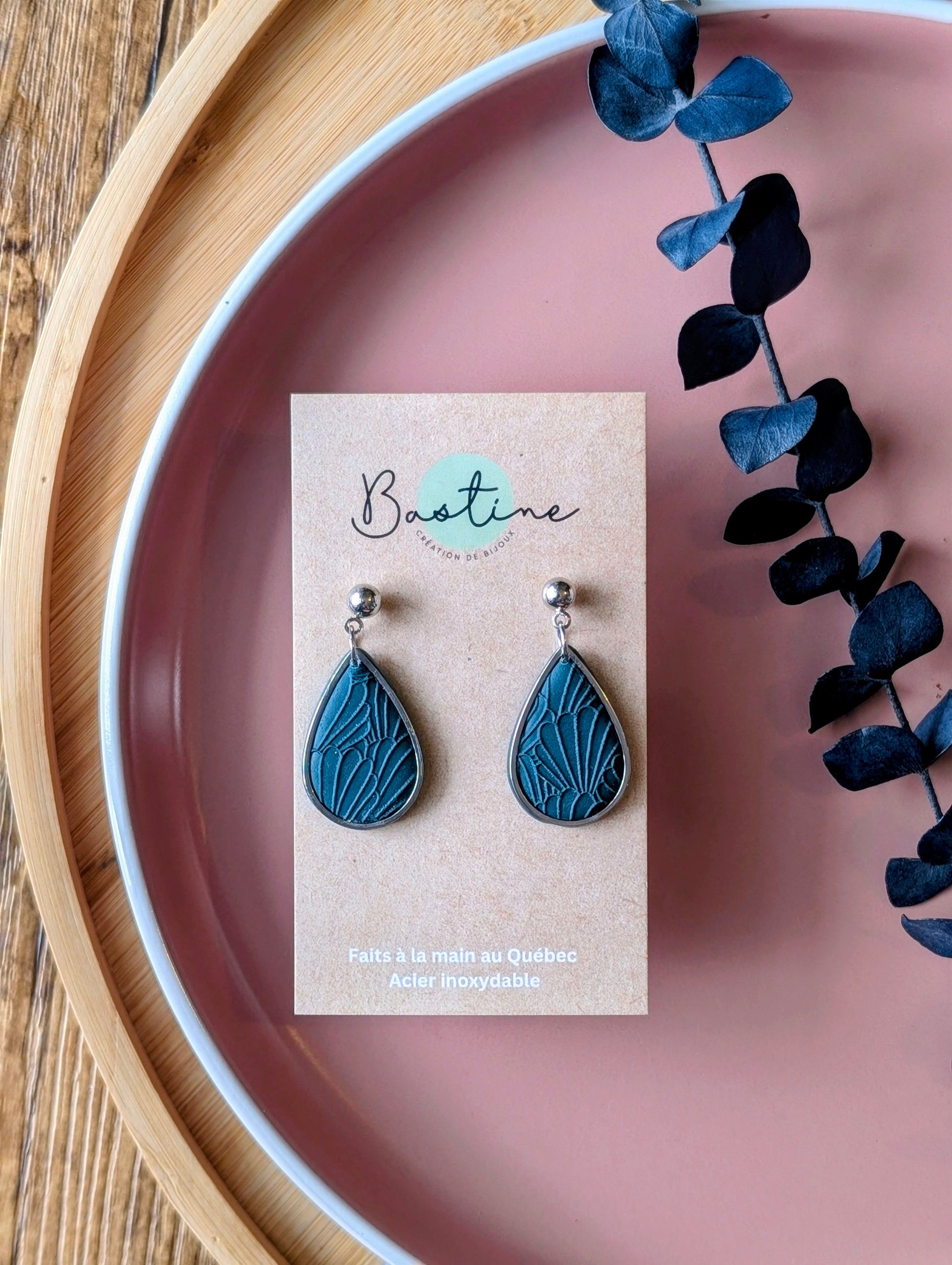 Leïla bourgogne - Boucles d'oreilles pendantes argile polymère et acier inoxydable hypoallergène