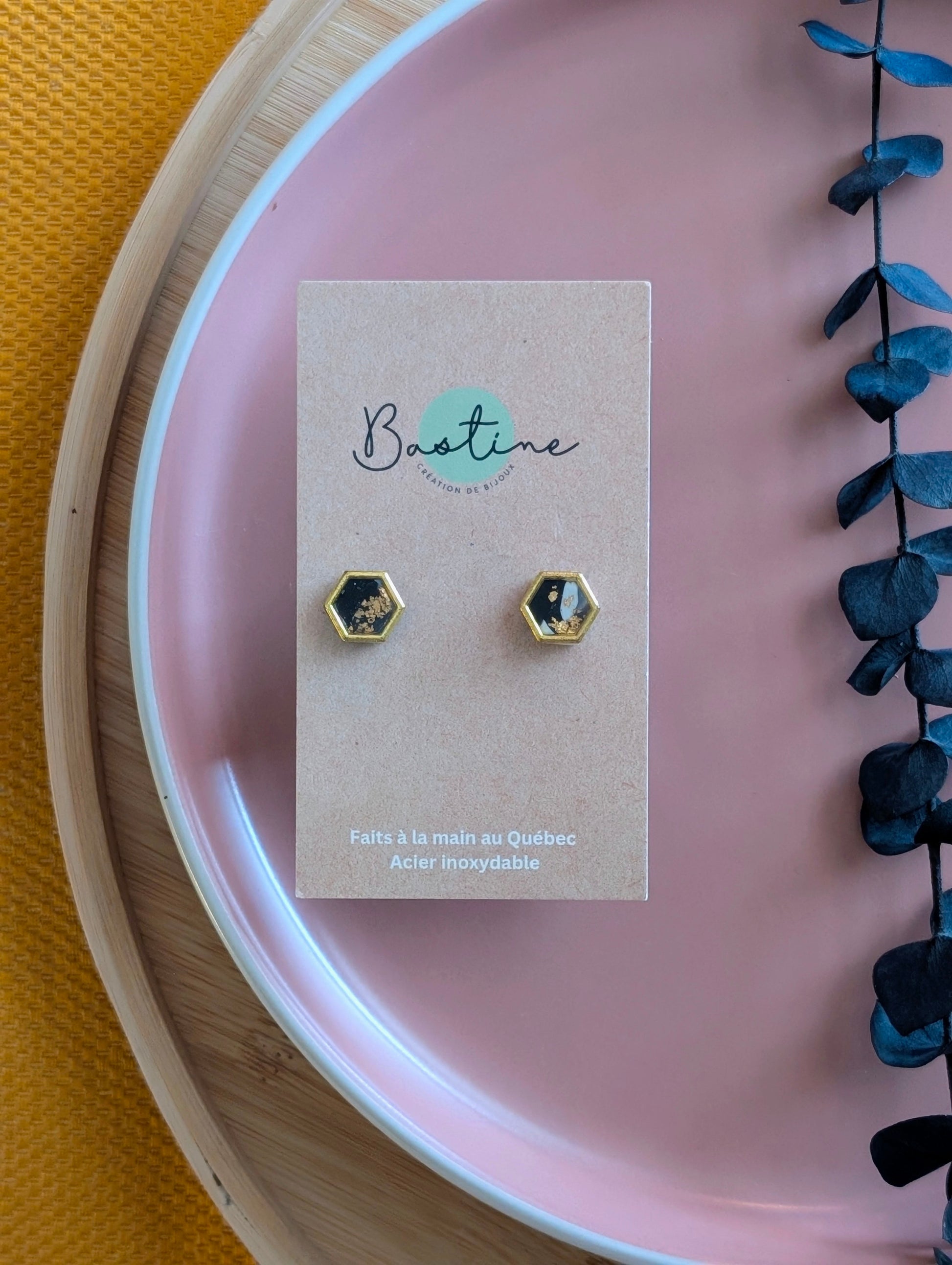 Agathe Noir - Hypoallergenic stainless steel polymer clay dangling earrings