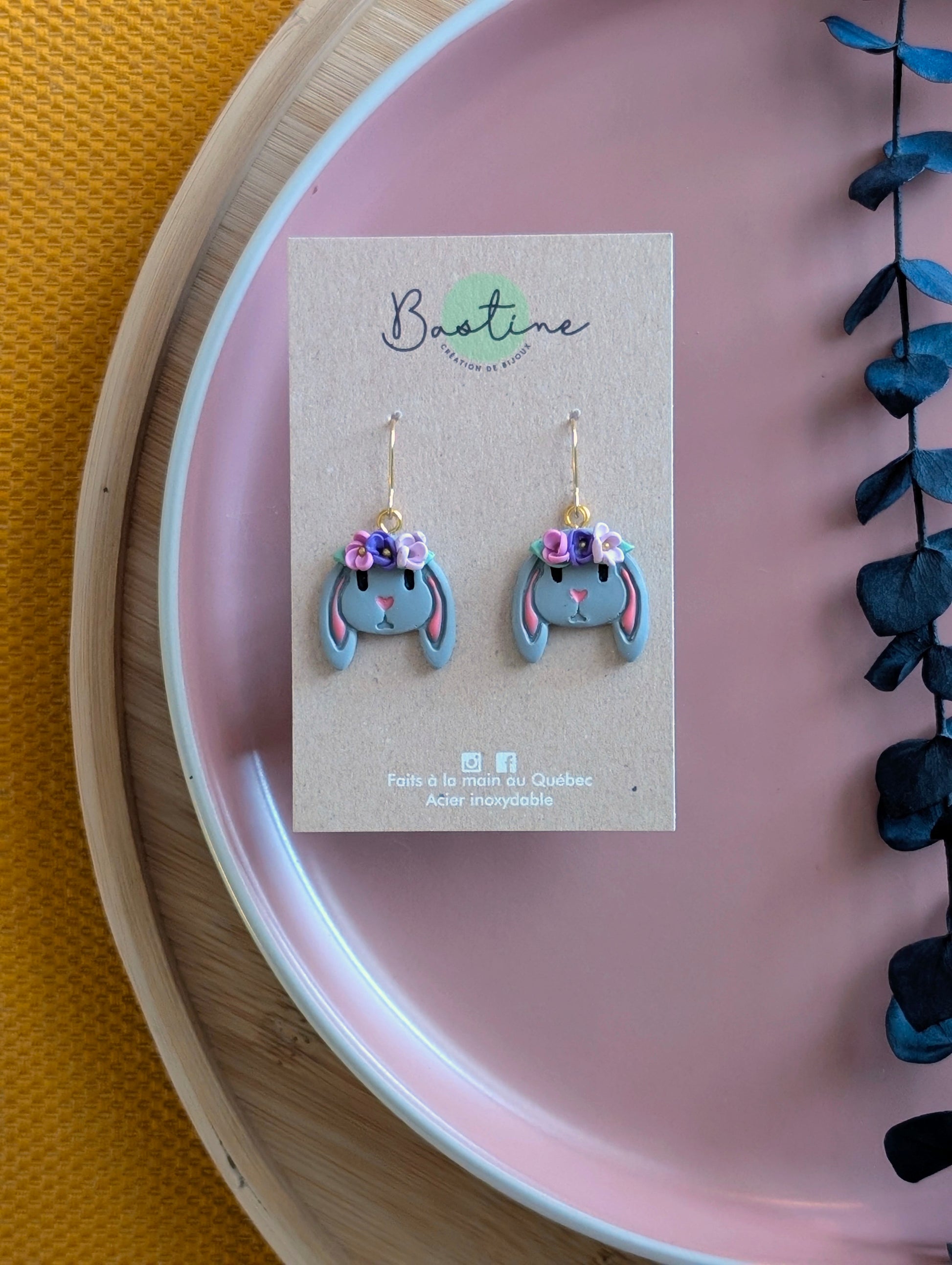 Boucles d'oreilles lapin fleurs