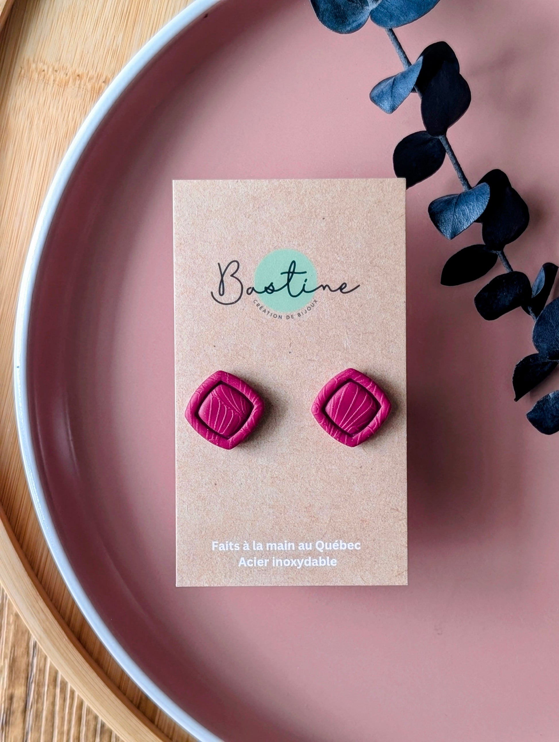 Leïla bourgogne - Boucles d'oreilles pendantes argile polymère et acier inoxydable hypoallergène