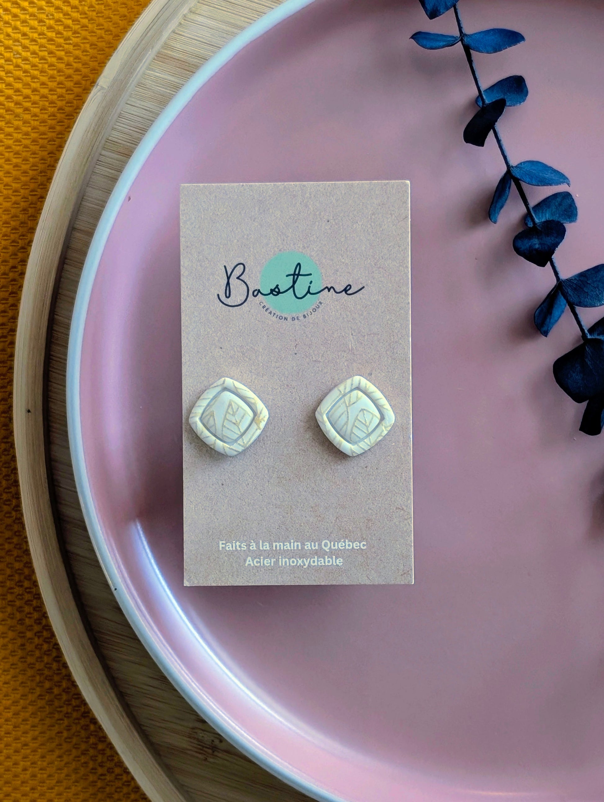 Boucles d'oreilles losanges crèmes