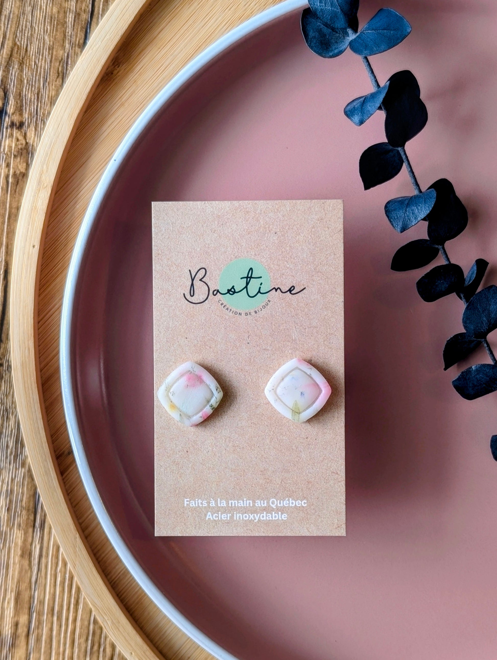 Pink Twisted Studs - Polymer Clay and Hypoallergenic Stainless Steel Stud Earrings