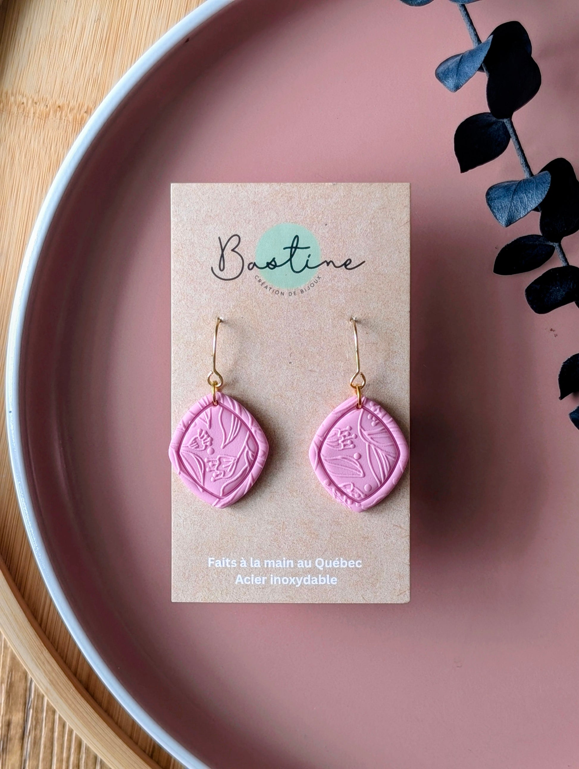 Leïla bourgogne - Boucles d'oreilles pendantes argile polymère et acier inoxydable hypoallergène
