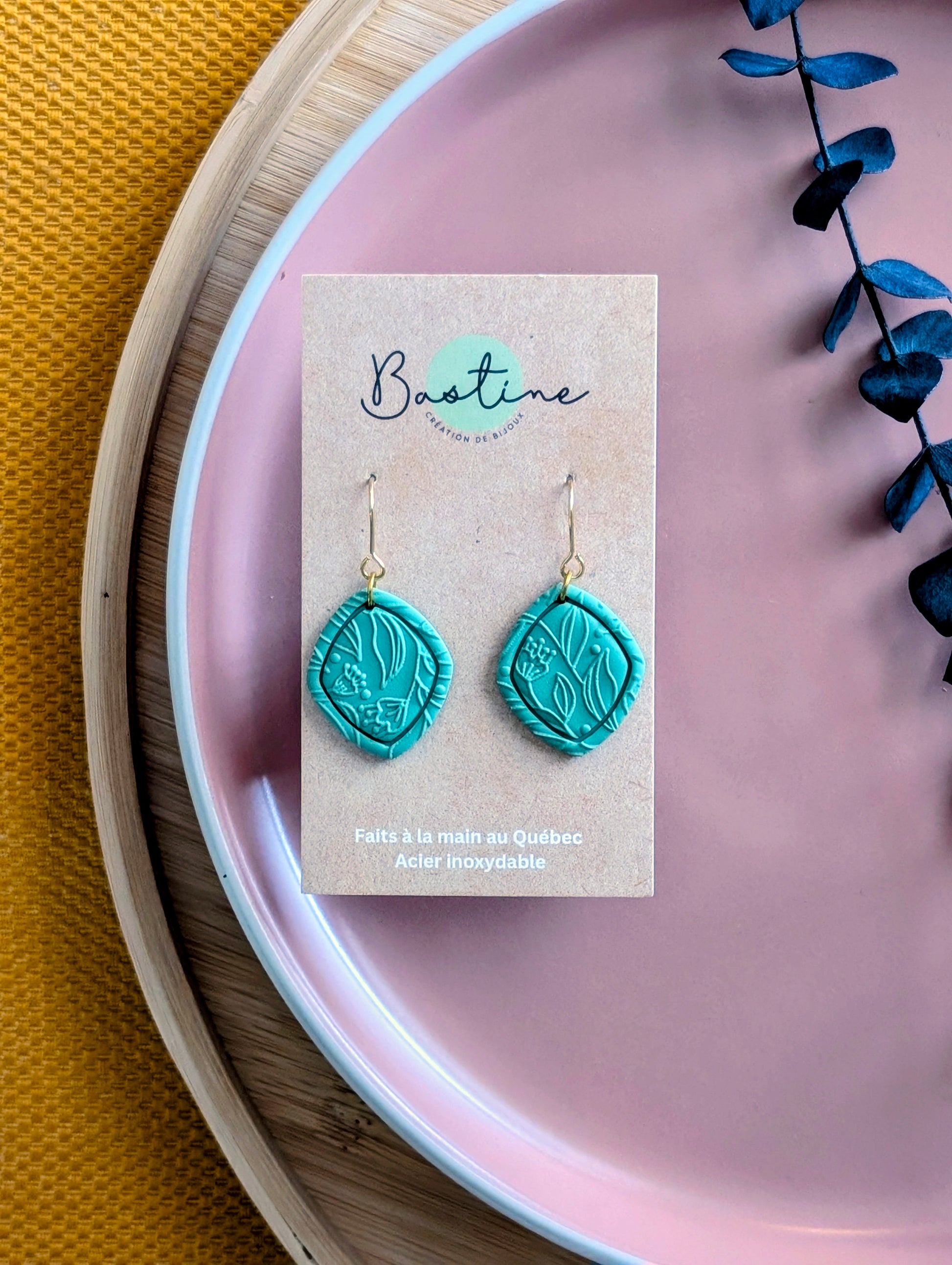 Karina sauge - Boucles d'oreilles pendantes en argile polymère et acier inoxydable hypoallergène