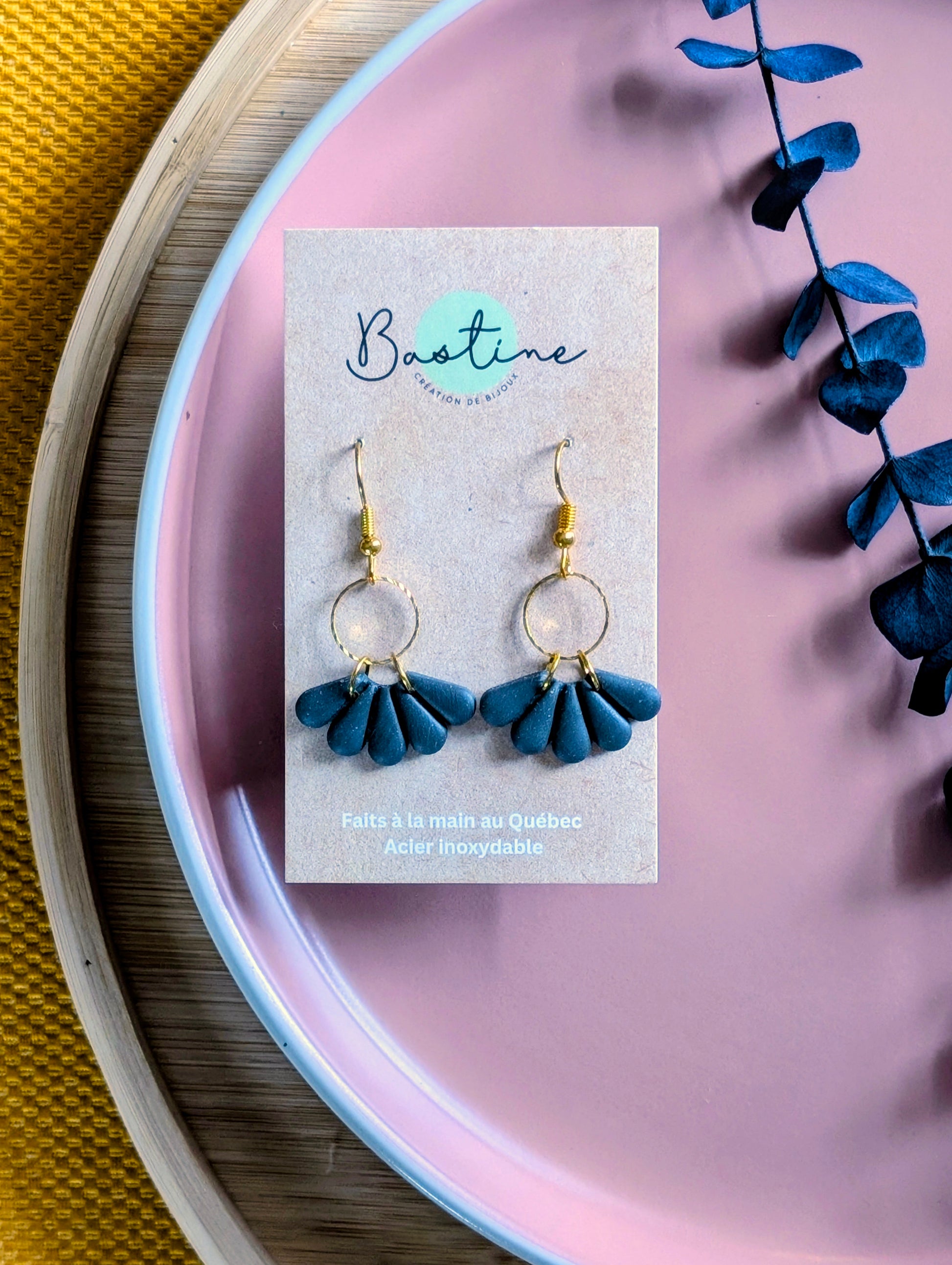 Agathe Noir - Hypoallergenic stainless steel polymer clay dangling earrings