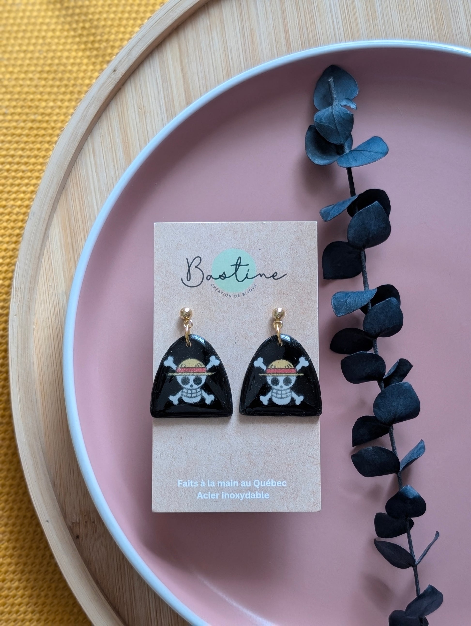 Agathe Noir - Hypoallergenic stainless steel polymer clay dangling earrings
