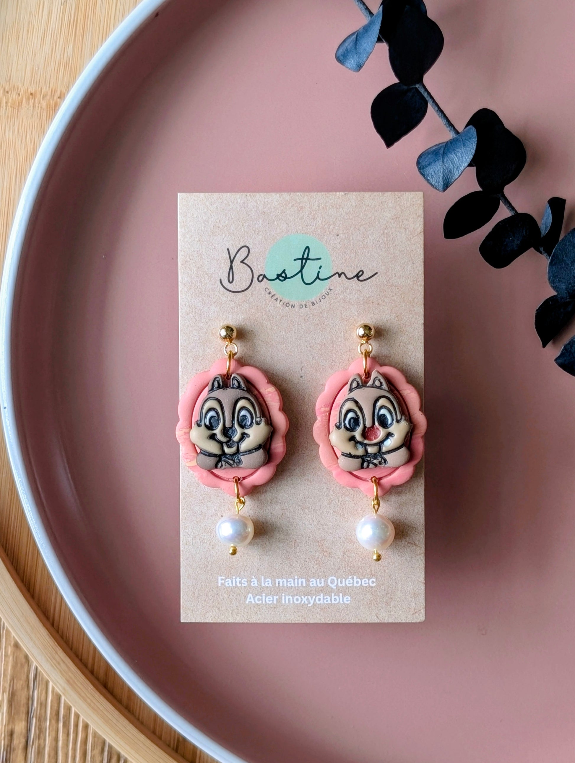 Joséphine - Polymer clay and stainless steel dangling earrings