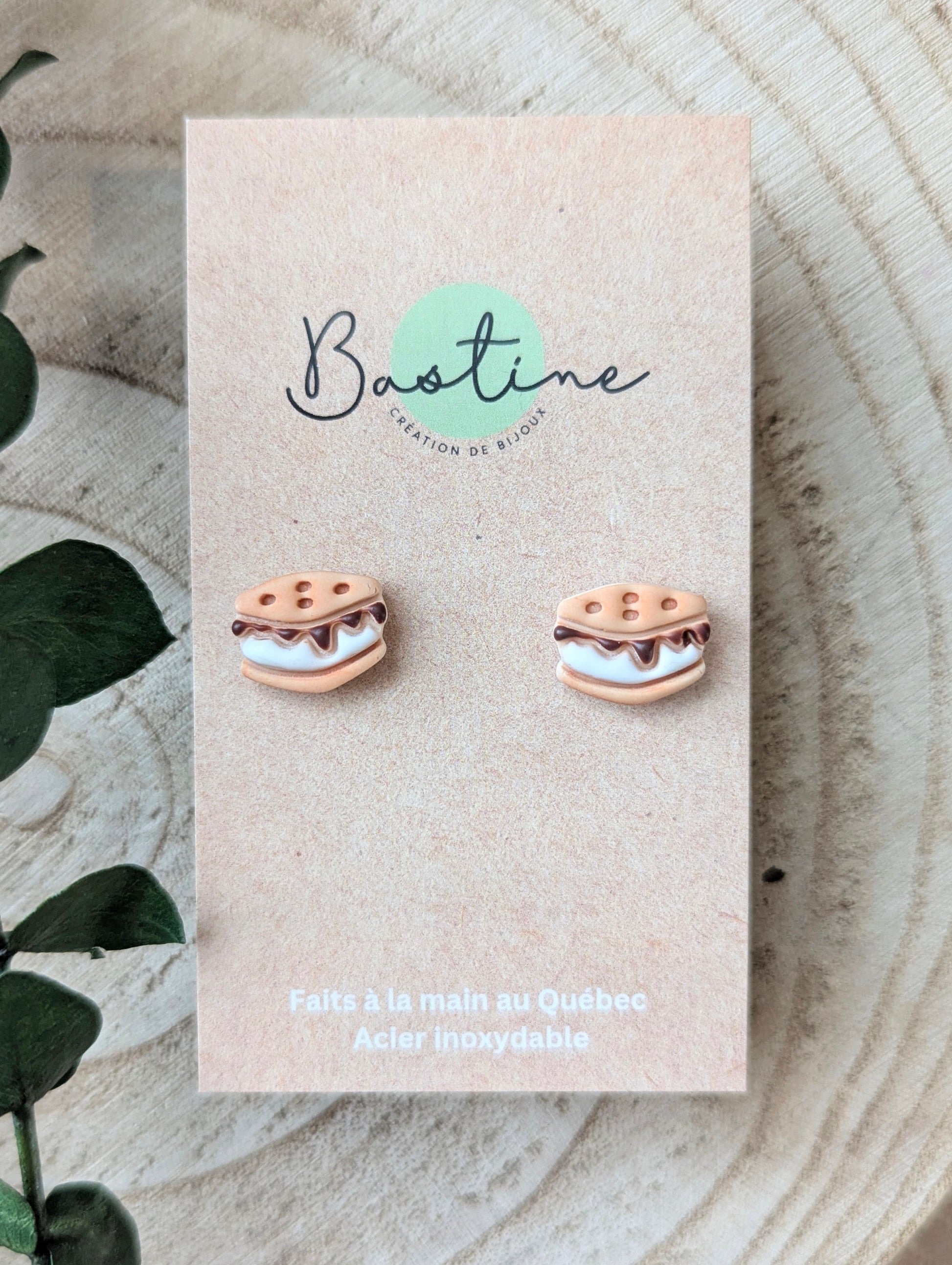 S'mores - Boucles d'oreilles studs en argile polymère et acier inoxydable hypoallergène