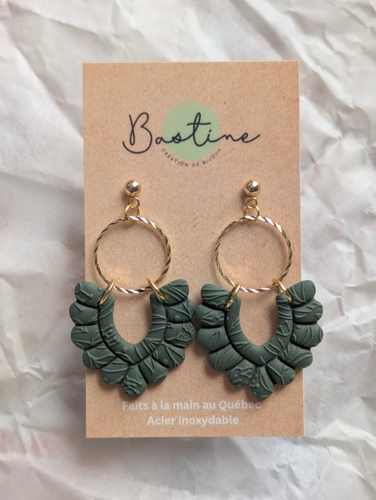 Pénélope Sauge - Boucles d'oreilles pendantes argile polymère et acier inoxydable hypoallergène
