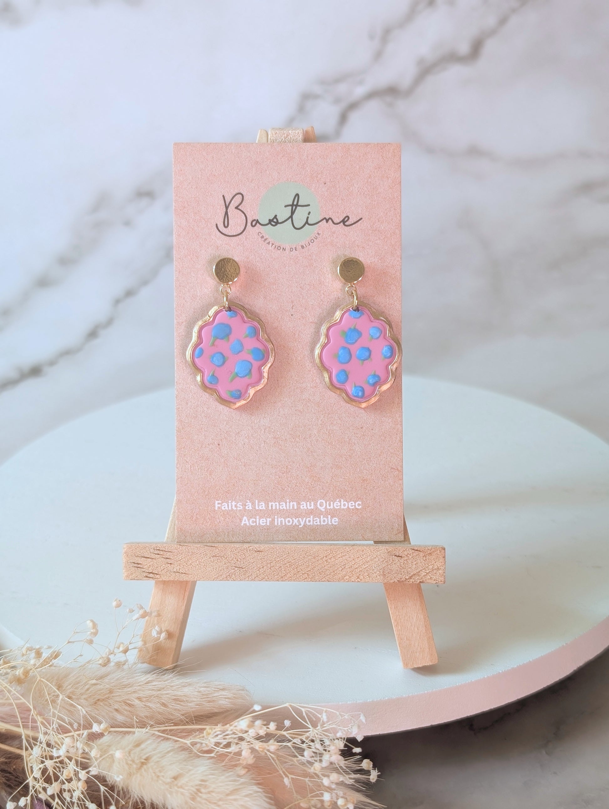 Pendantes fleuries - Boucles d'oreilles pendantes argile polymère et acier inoxydable hypoallergène