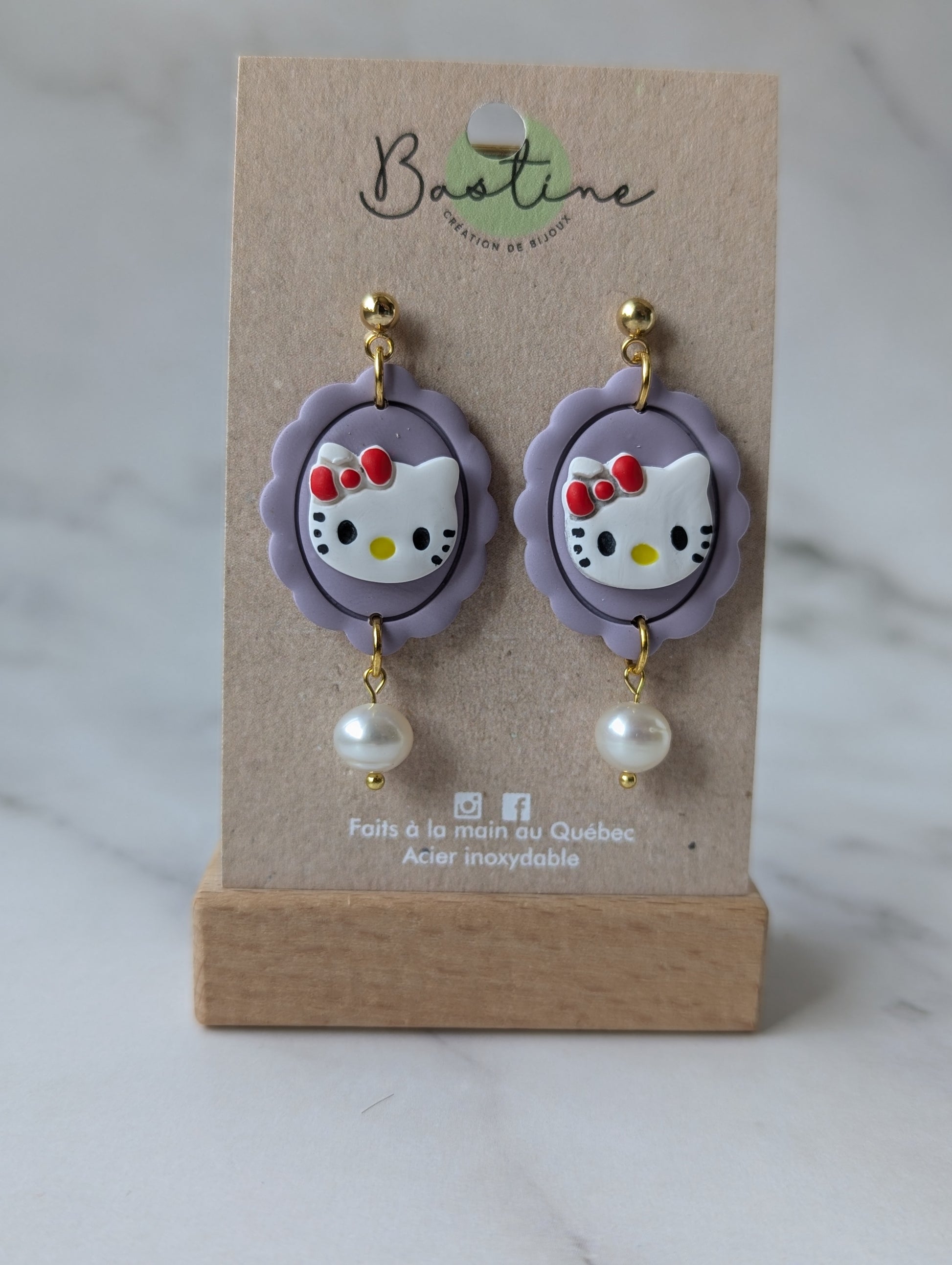 Pénélope Sauge - Boucles d'oreilles pendantes argile polymère et acier inoxydable hypoallergène