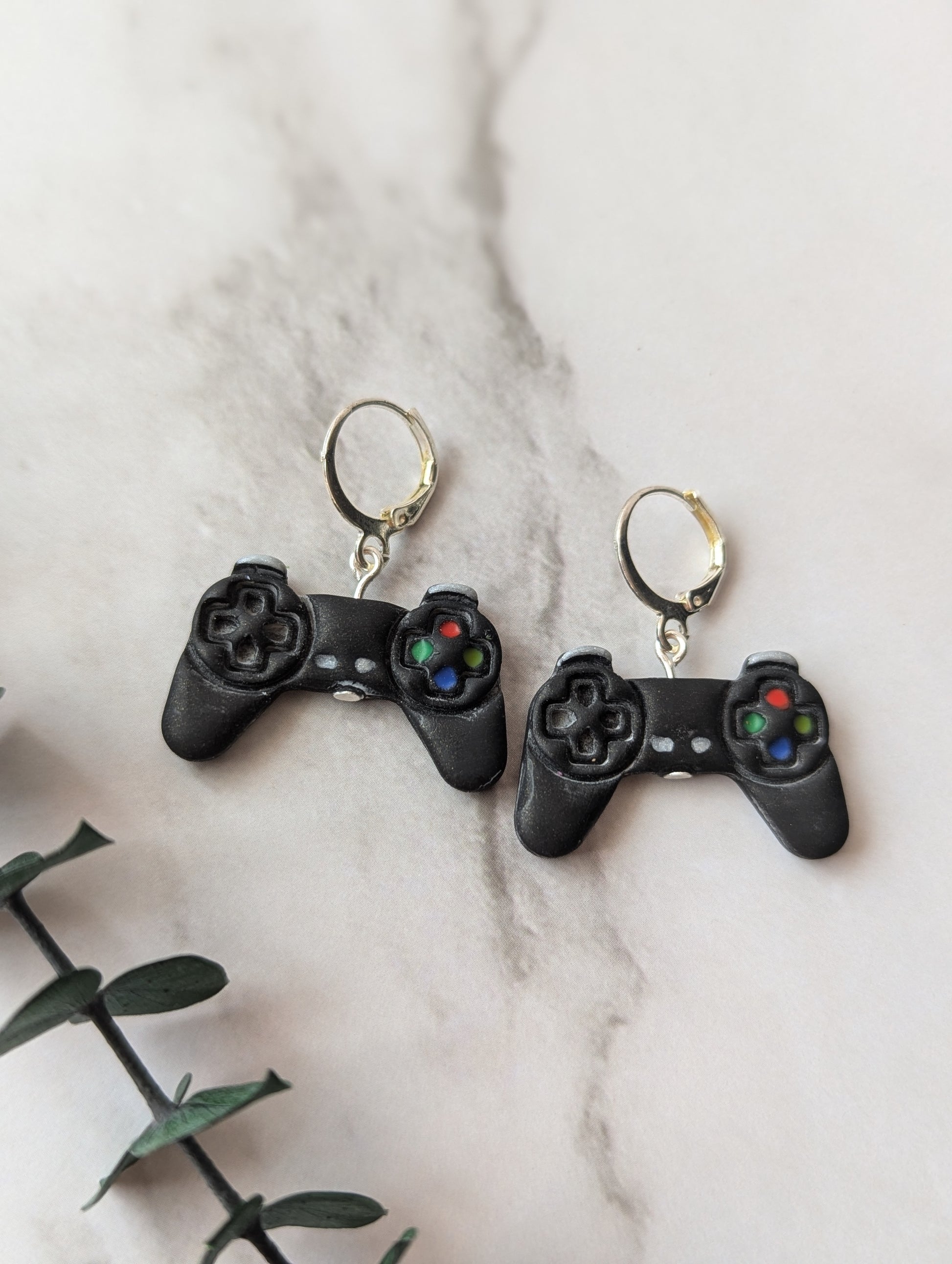 Boucles d'oreilles pendantes en forme de manettes de jeux vidéo. Environ 3,5 cm, tiges hypoallergènes en acier inoxydable.