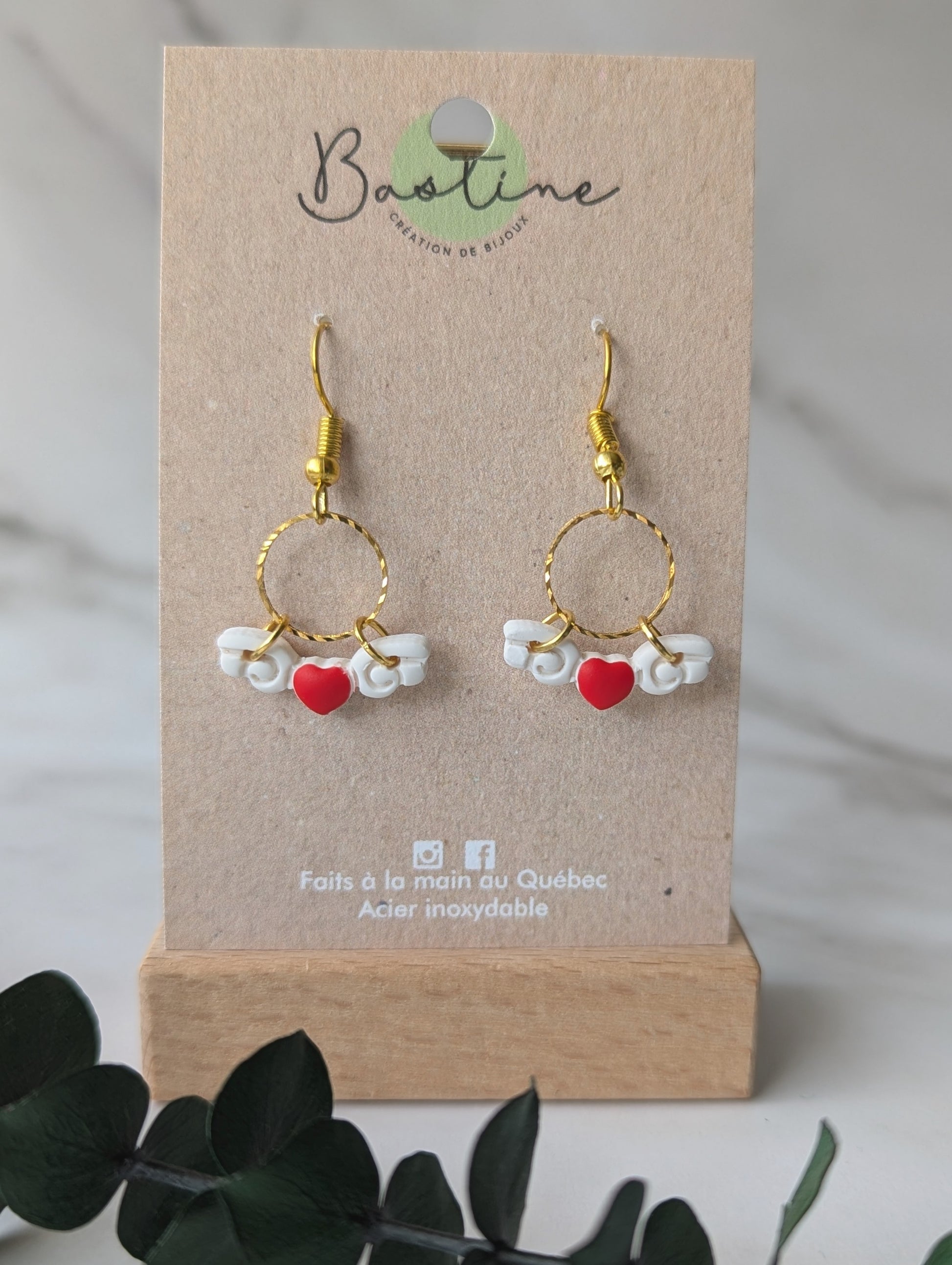 Sakura Cœurs - Boucles d'oreilles pendantes en argile polymère acier inoxydable hypoallergène