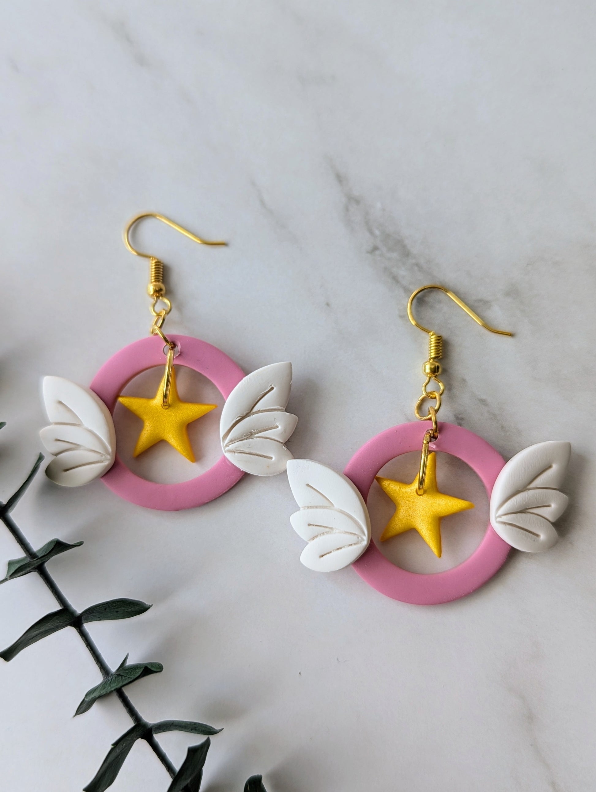 Sakura Étoiles - Boucles d'oreilles pendantes en argile polymère acier inoxydable hypoallergène