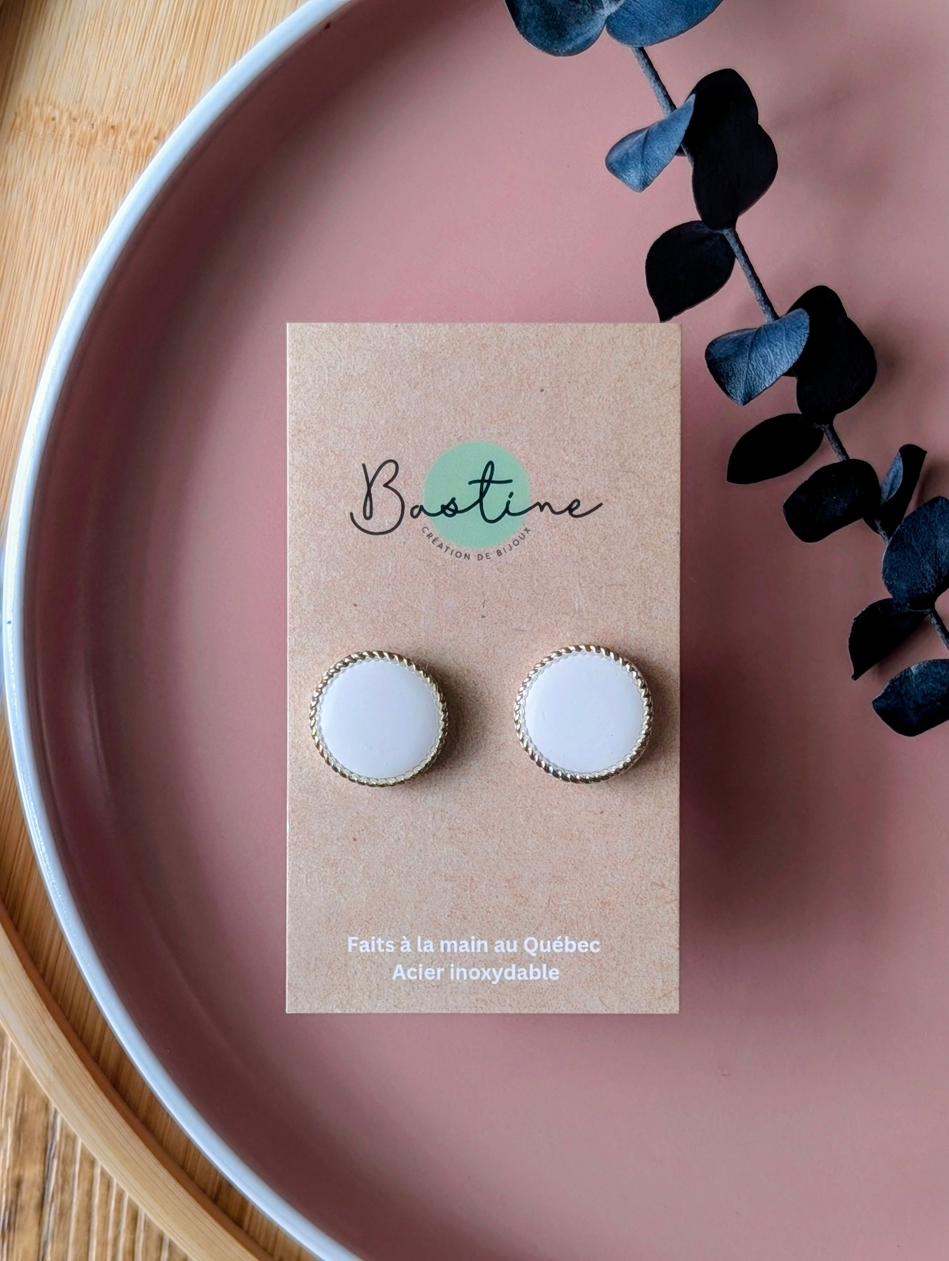 Composition de la tige ou du crochet indiqué sous chaque poduit ( Alliage de zinc hypoallergènes sans nickel, plomb ni cadmium/ or 18 carats / acier inoxydable)