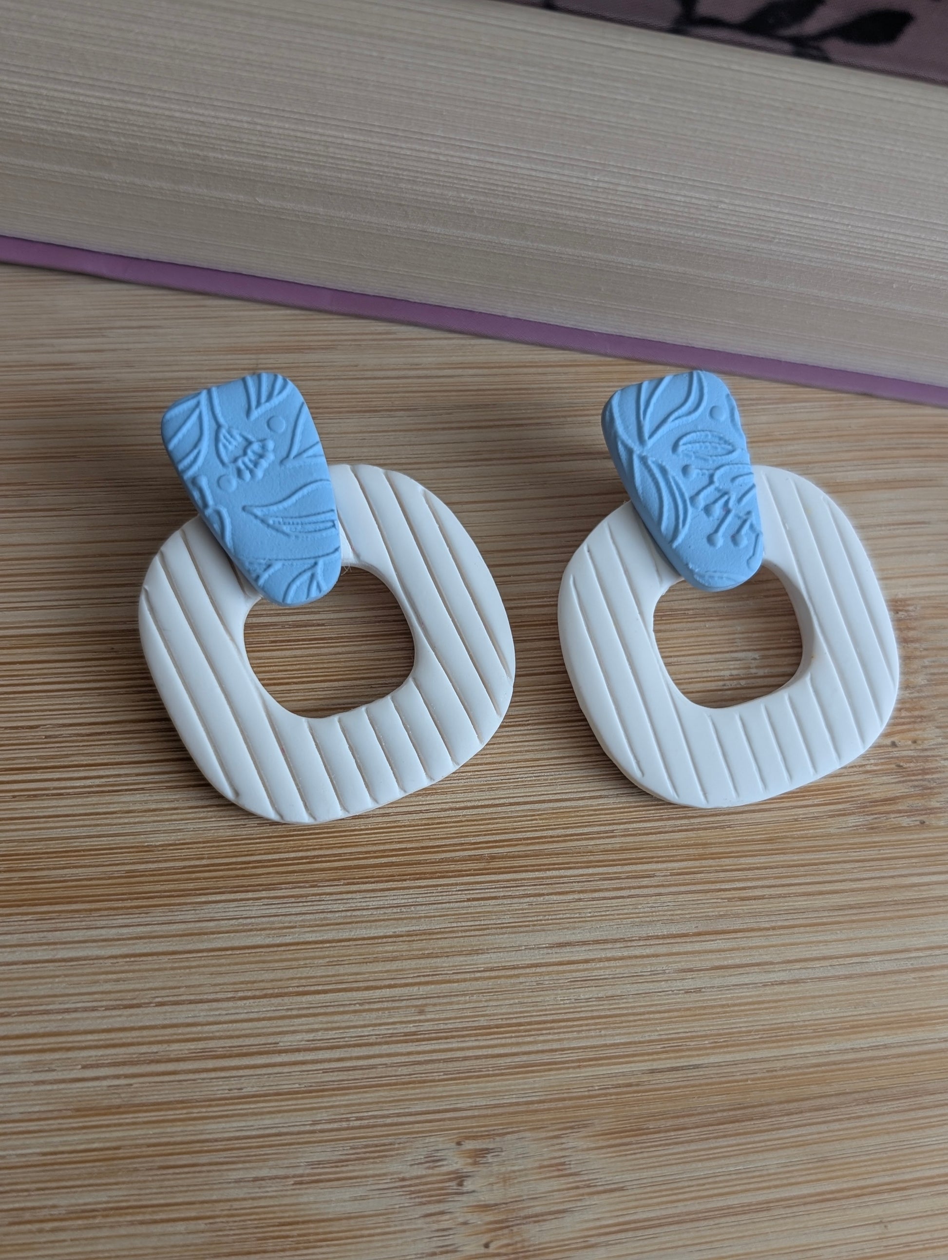 Thérésa bleu ciel - Boucles d'oreilles de type "ear jacket" argile polymère et acier inoxydable hypoallergène