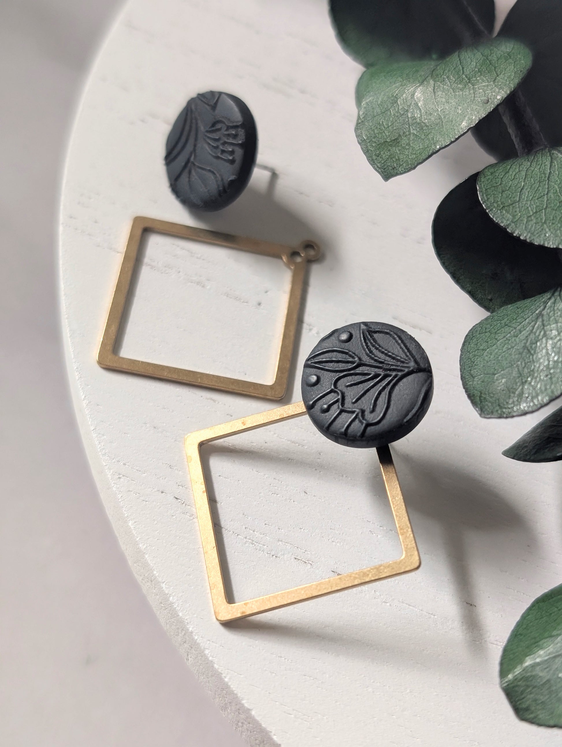 Talia noires - Boucles d'oreilles de type "ear jacket" argile polymère et acier inoxydable hypoallergène (Copie) (Copie) (Copie)