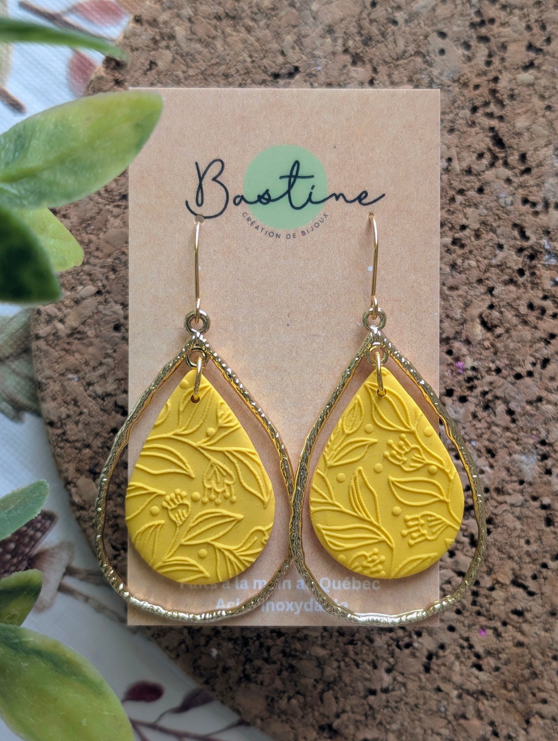Tamara jaune - Boucles d'oreilles pendantes en argile polymère et acier inoxydable hypoallergène